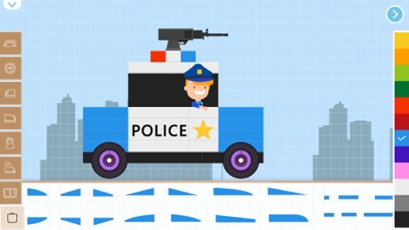 The game allows children to piece together unique cars using colorful bricks, like a puzzle. With over 140 classical templates to choose from - such as police cars, fire trucks, racing cars, sports cars, road rollers, excavators, monster trucks, buses, lunar rovers, and more - children can create their designs using a variety of brick styles and car parts. Once the car is constructed, they can take it to the next level and enjoy the racing games.