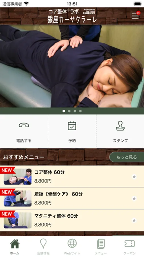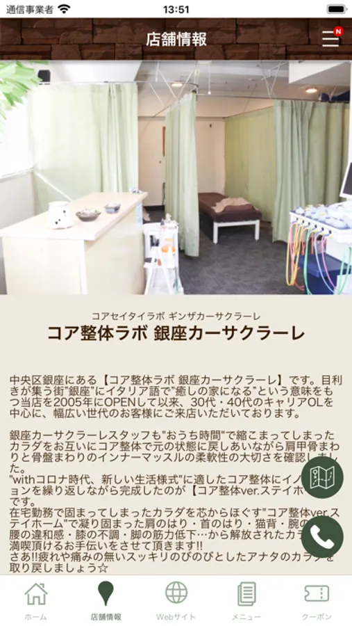 コア整体ラボ 銀座カーサクラーレの公式アプリが登場。アプリを通して『コア整体ラボ 銀座カーサクラーレ』の新着情報やお得な情報をリアルタイムで受け取ることができます。また、いつでもお手元のスマートフォンから、メニューやヘアスタイル、ご希望のお時間帯のチェック・ご予約などが可能です。アプリをインストールしていただくことにより『コア整体ラボ 銀座カーサクラーレ』を、より便利に身近にご利用していただけます。