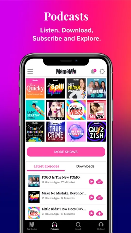 Listen, subscribe to and download episodes from over 25 podcasts, including Mamamia Out Loud, No Filter with Mia Freedman, daily news update The Quicky, True Crime Conversations and You Beauty