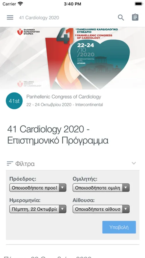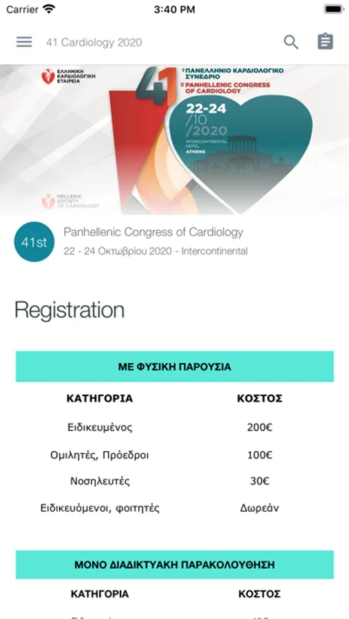 Το 41o Πανελλήνιο Καρδιολογικό Συνέδριο θα πραγματοποιηθεί με φυσική παρουσία τηρουμένων των υγειονομικών πρωτοκόλλων στο ξενοδοχείο Intercontinental 22-24/10/2020.