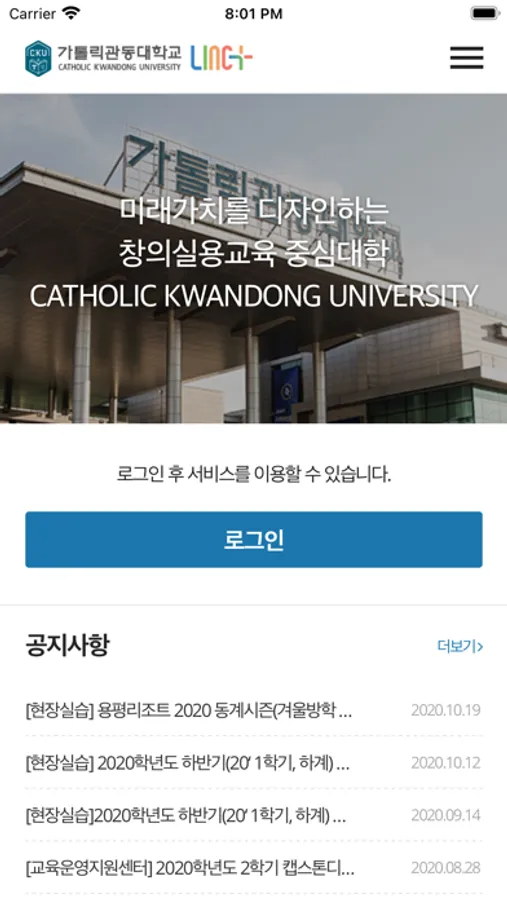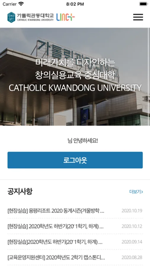 가톨릭관동대학교 [LINC+사업단] 현장실습지원센터를 편리하게 이용할 수 있는 어플리케이션입니다.
