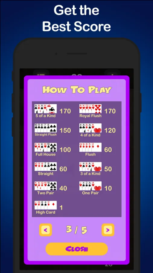 This is NOT a gambling game. It is a solo puzzle game inspired by crossing Solitaire and Patience with the scoring system of Poker.
