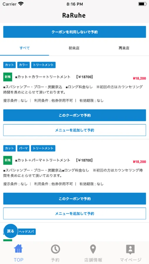 お得なクーポンが配信されます。ネット予約時にクーポン利用での予約も可能なので来店時もスムーズに施術頂けます。