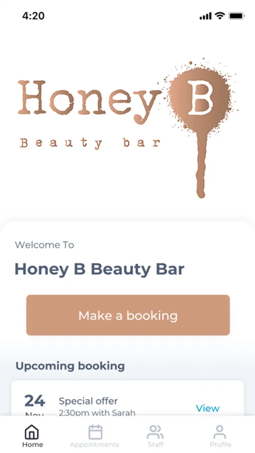 The Honey B Beauty Bar app makes booking your appointments and managing your loyalty points even easier. You're just a few taps away from feeling good and looking great!