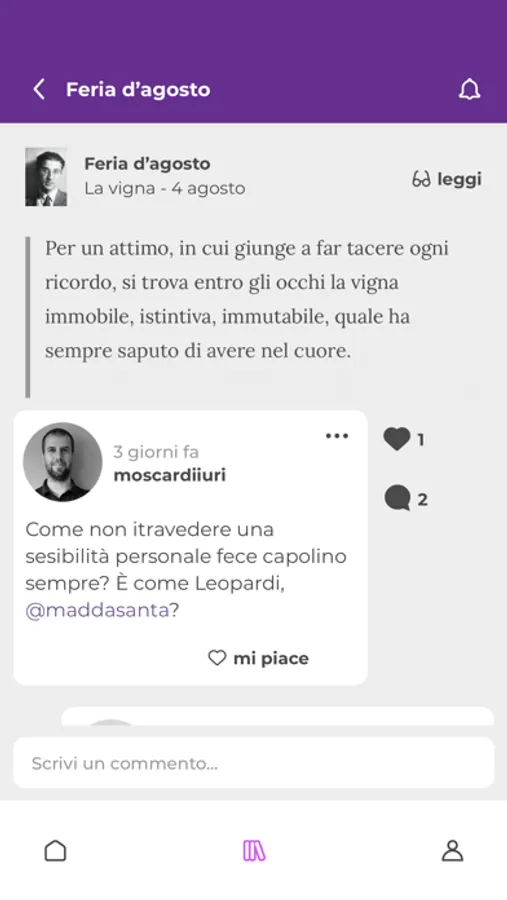 • Read the texts directly on the app and comment them with short messages of 140 characters: your comments will appear linked to the portion of text they refer to.