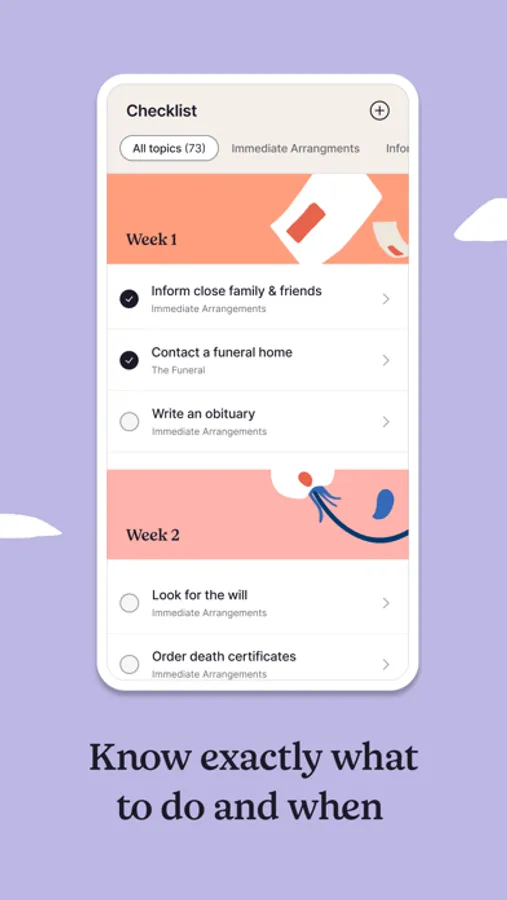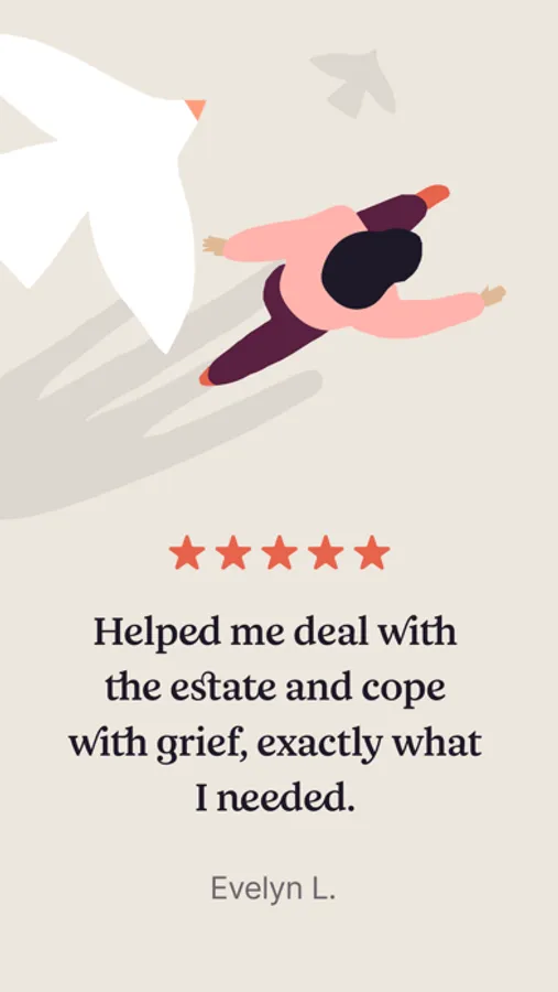 When you lose a loved one, Empathy is here for the guidance and support you need to get through it. Whether you’re writing an obituary, locating the will, or opening a probate bank account, it shows you the specific steps to take, based on your unique situation, right when they should be handled.