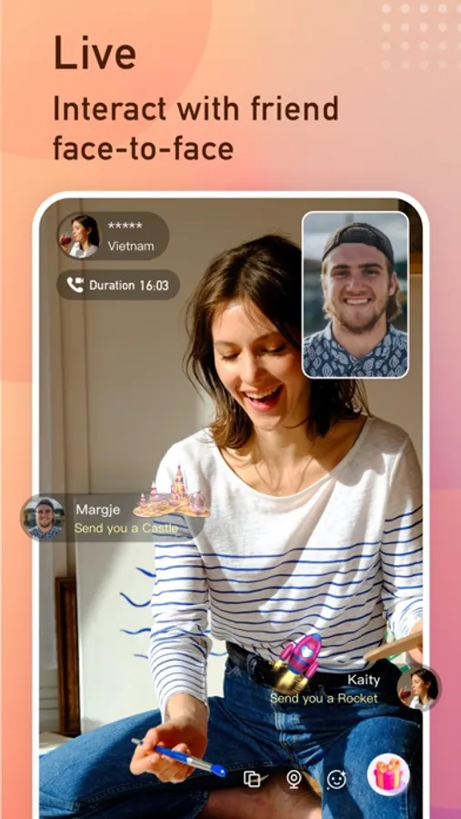 【Live Room & PK】Show your talents in a live room by singing, dancing, or playing games, and PK with friends for added fun!