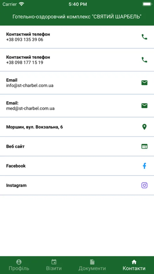 Мобільний додаток Святий Шарбель - це зручність та комфорт для наших гостей , адже функціонал дозволяє завжди мати у швидкому доступі для власного користування результати усіх:візитів, обстежень, аналізів та процедур.