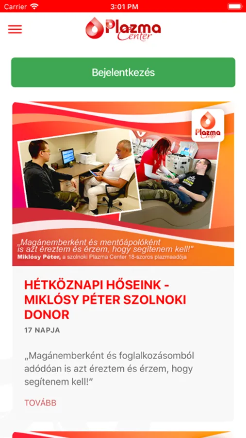 Időpontfoglalást és alkalmassági vizsgálatra való jelentkezést tesz lehetővé a donoroknak, illetve értesülhetnek a legfrissebb hírekről. A Donorok az alábbi menüpontok és lehetőségek közül választhatnak: főoldal, időpontfoglalás, hírek/akciók, üzenetek, kapcsolat, hibabejelentés, kijelentkezés.