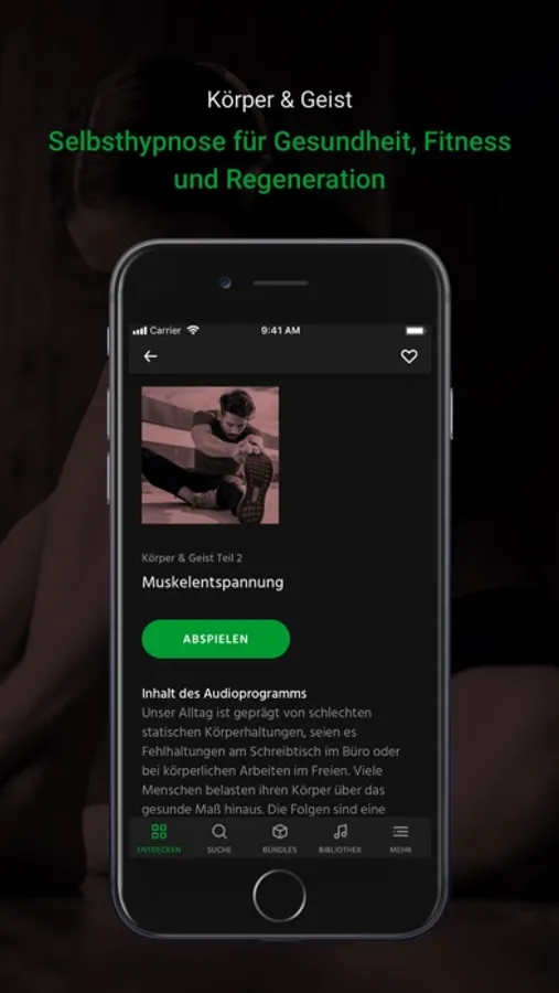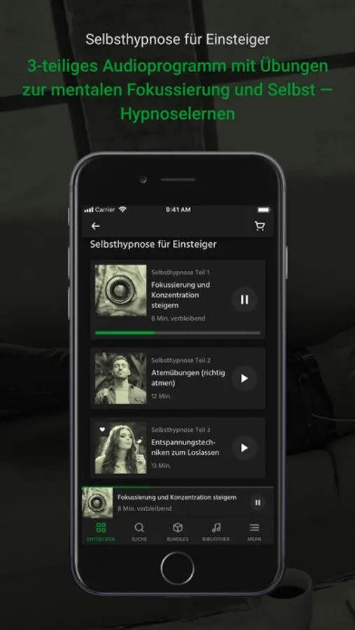 Diese App bietet dir medizinisch fundiert erarbeitete Audioprogramme (mindCRAFT Audiofiles) zur Selbsthypnose, Trance, mentalen und körperlichen Entspannung und Regeneration, sowie Audioprogramme zur Selbsthypnose bei Geburtsvorbereitung, Entbindungen oder medizinischen Eingriffen.