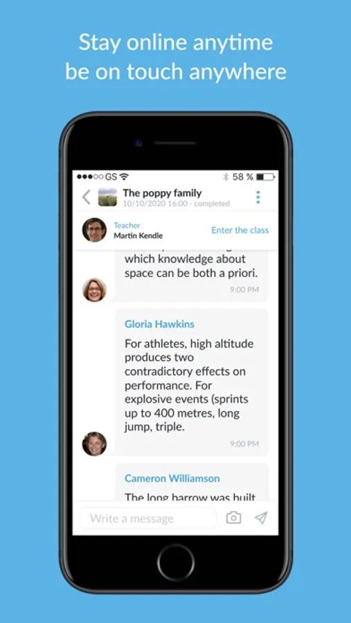 OnClass Messenger is a FREE messaging app available for iPhone and other smartphones. Messenger uses your phone's Internet connection (4G/ 3G/2G/EDGE or Wi-Fi, if available) to let you to exchange messages with students and teachers.
