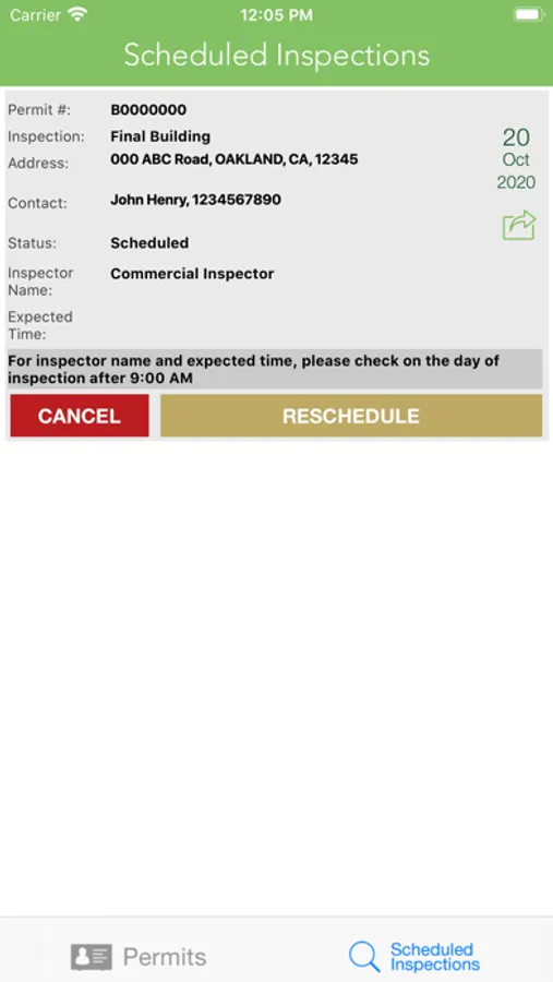 * Reschedule or cancel inspection in seconds.