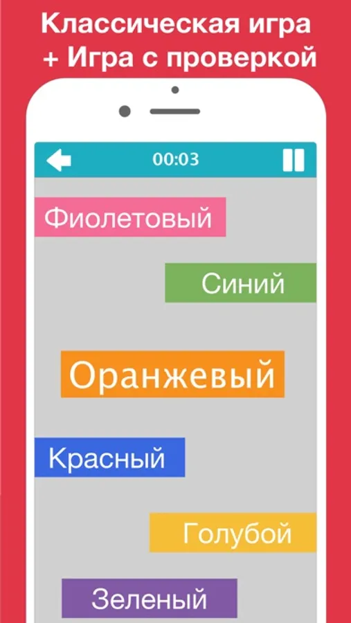 Помимо слов-цветов, в игре могут появляться другие слова (в зависимости от выбранных настроек): ХЛОПКИ, НАЖАТИЯ НА ЭКРАН, ПРЫЖКИ или ВСЕ ВМЕСТЕ. Это делает игру очень увлекательной и в то же время заставляет мозг работать более усердно!
