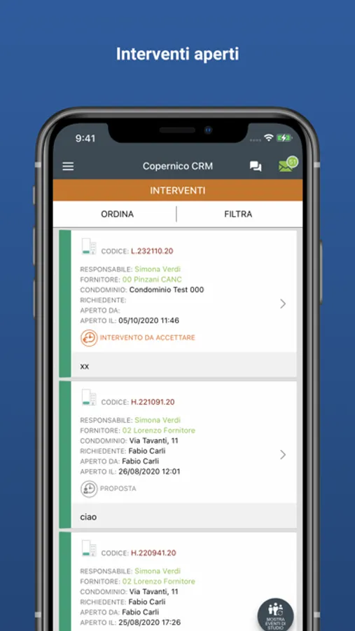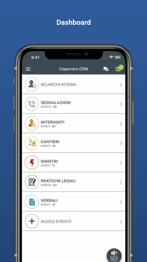 Copernico CRM è una piattaforma che utilizza il WEB e una comoda APP per consentire l'interazione fra lo Studio, l’amministratore, i fornitori ed i condomini.