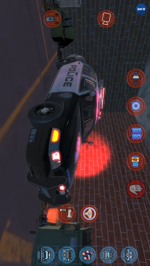 Tap the police car to activate the 3 different settings of police response lights, just like the real thing.