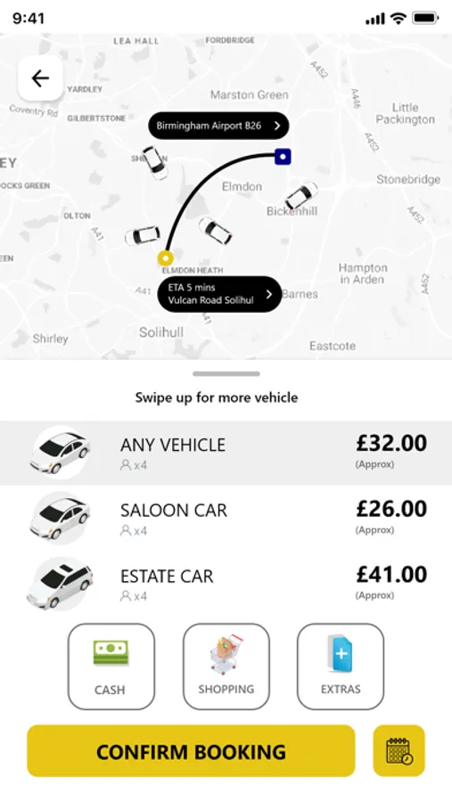 You can place the booking directly on our map, and see how many available cars there are nearby.