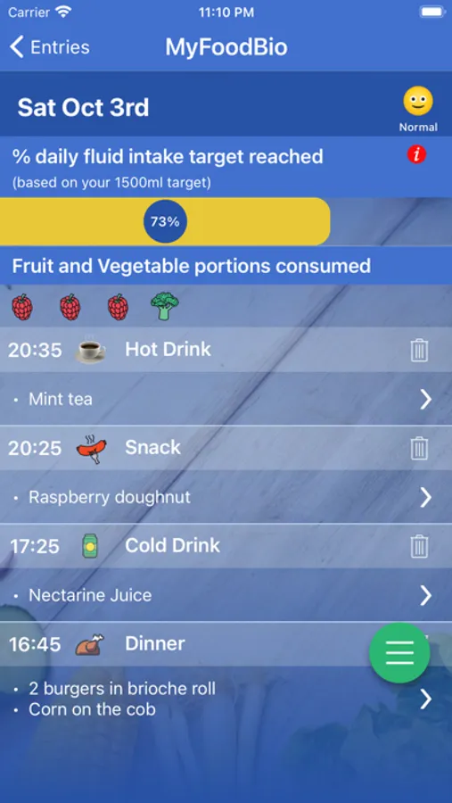 - Show how much fruit and vegetables you are eating as well as the amount of drink consumed (against a set daily target).