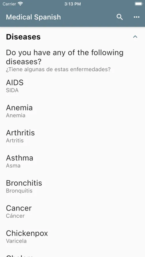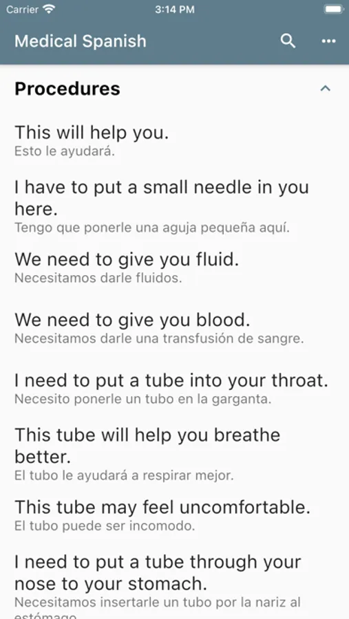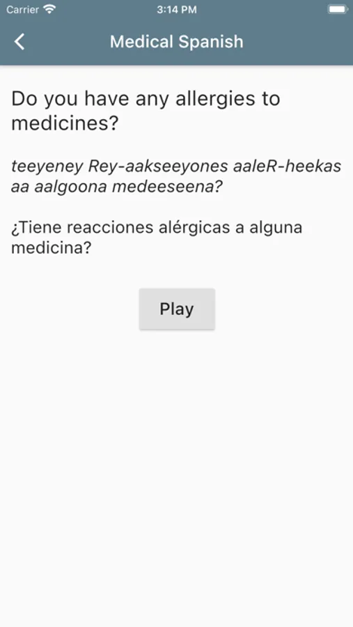 Using this app, you can select an English phrase and view its translation and how to pronounce it in Spanish.