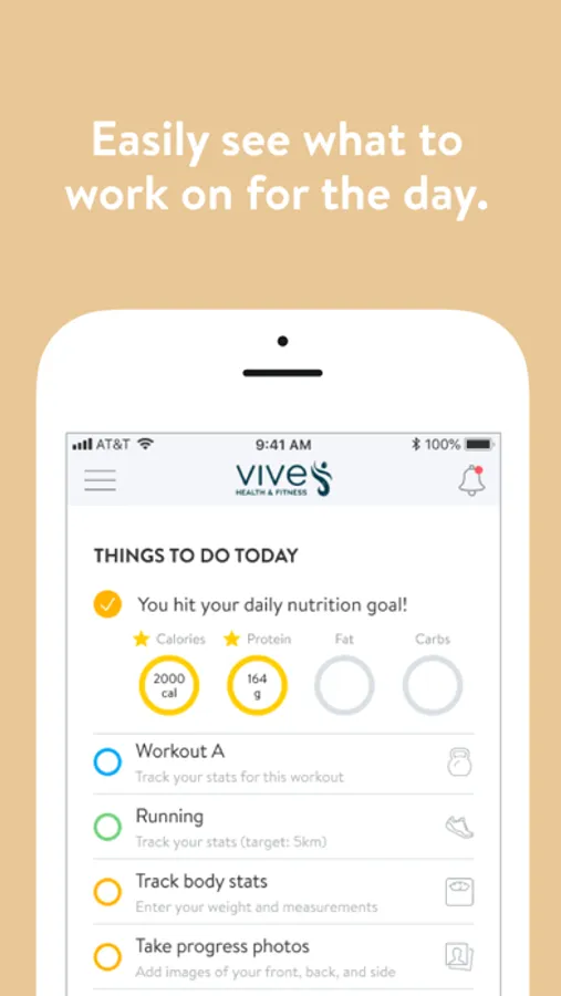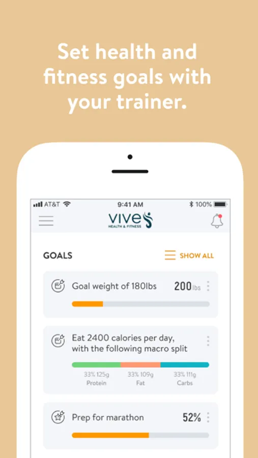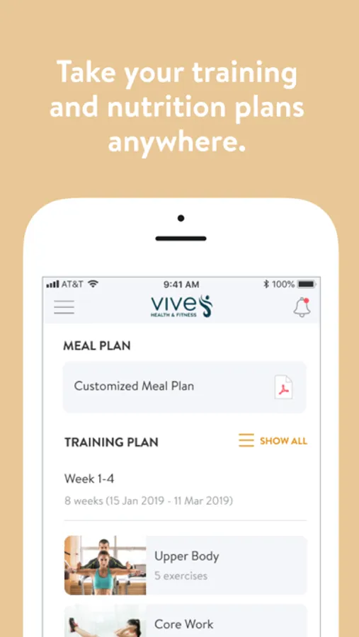 With the VIVE Accountability App, you can start tracking your workouts and meals, measuring results, and achieving your fitness goals, all with the help of your personal trainer.
