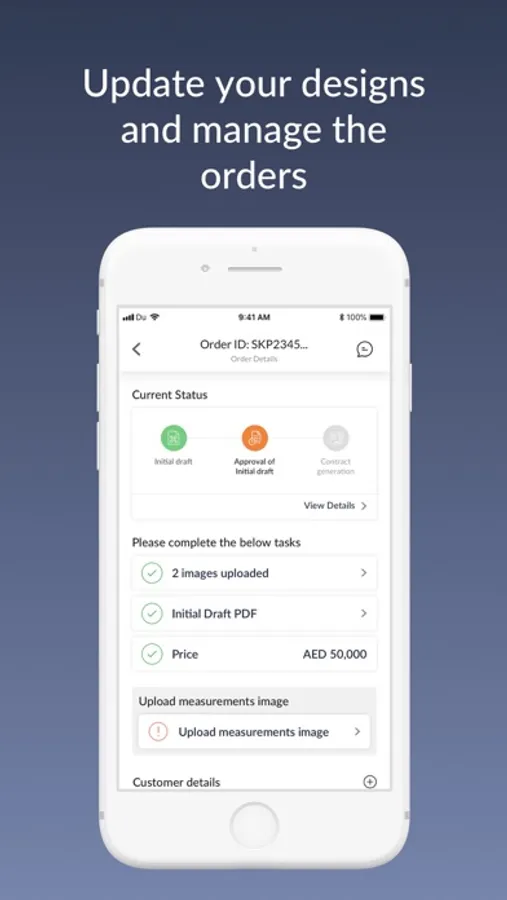 Update the status of the order right from your phone. Intimate the customers about meeting time, your arrival, and draft uploads at the click of a button.