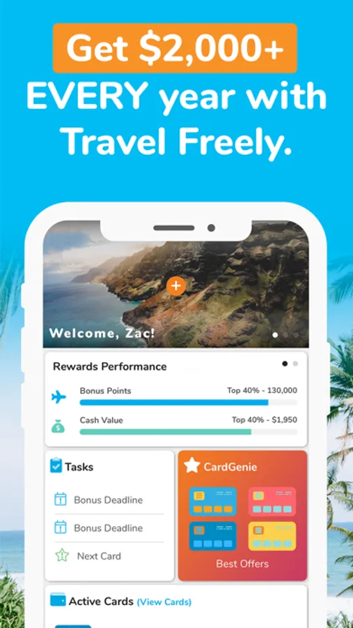 Travel Freely comes with our CardGenie, a personalized credit card recommendation tool with the best points and miles rewards bonuses for your situation. Have 100% confidence that you are finding the best rewards cards for you.