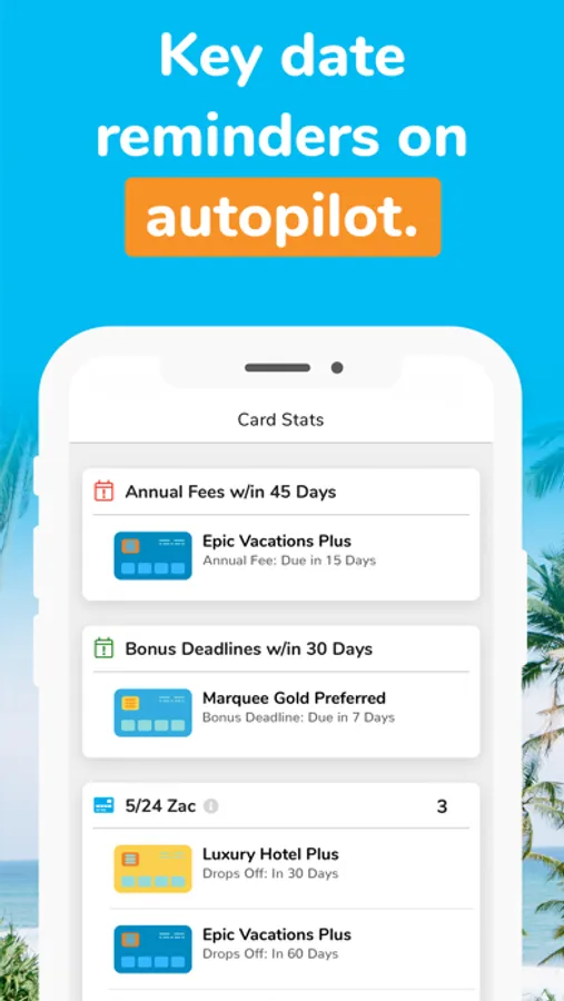 A user-friendly organizing system to set personal travel goals, keep track of your specific cards and points earned, and monitor your credit score.