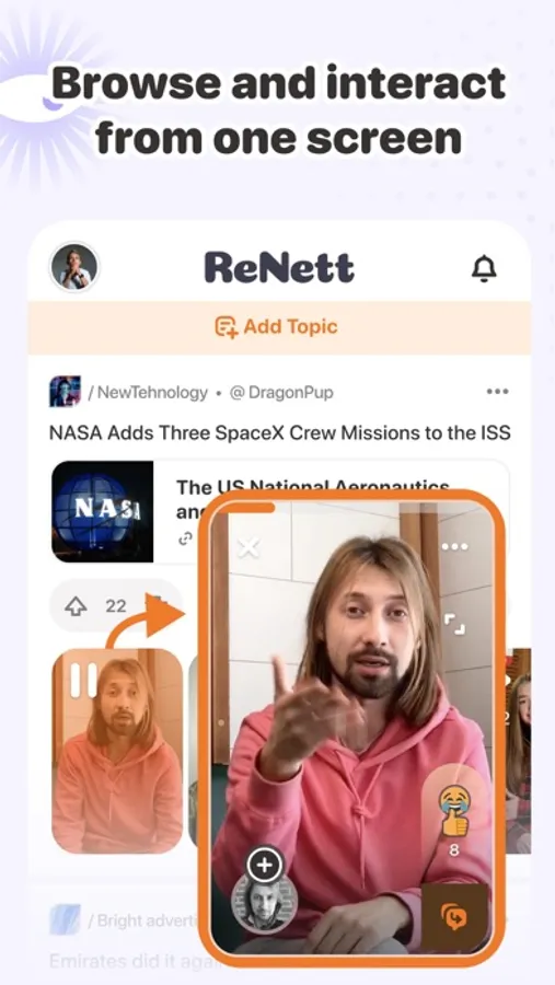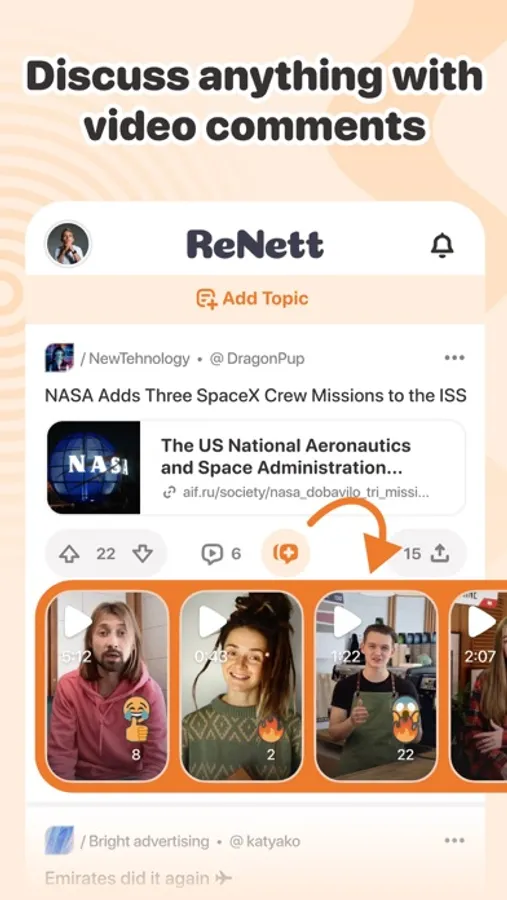 ReNett is a platform where you can discuss any topic as openly and sincerely as possible. Video communication is the new way to share opinions in communities, discuss topics and bring together people with common interests. This is a community of people who love to communicate in video format.