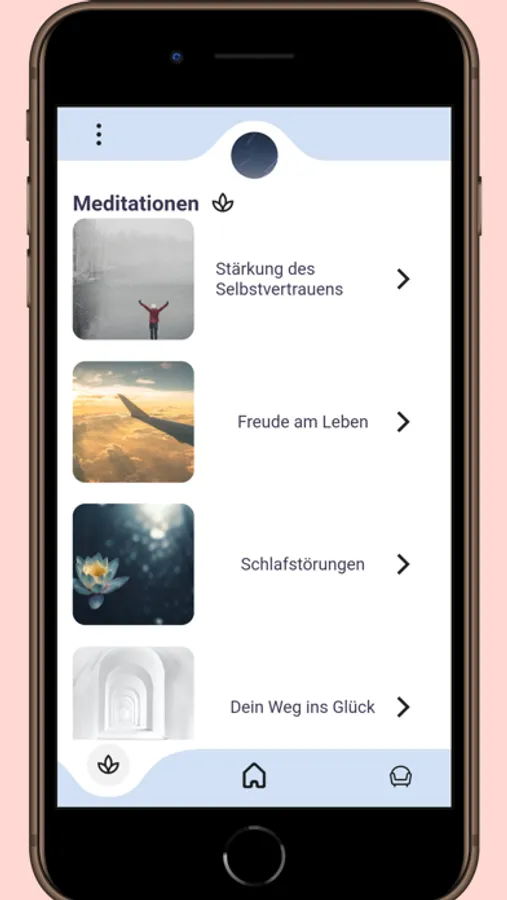 Machen Sie es sich einfach bequem! Schließen Sie die Augen und lauschen Sie der Stimme oder Musik, wie auch immer Sie sich entscheiden. Ihre Gedanken lassen Sie zu, das heißt, schieben Sie sie nicht weg. Die Gedanken kommen und dann lassen Sie sie wieder weiterziehen und Ihr Fokus geht zurück zur Meditation. Dies kann bei Ihrer ersten Meditation noch sehr häufig sein, aber von mal zu mal wird es weniger. Die Ideen oder Gedanken während einer Meditation kommen später wieder zurück!