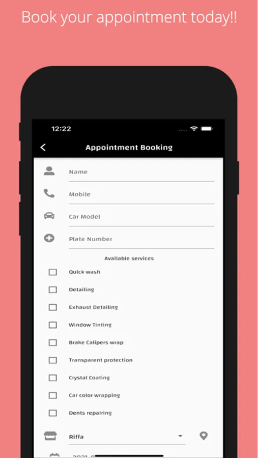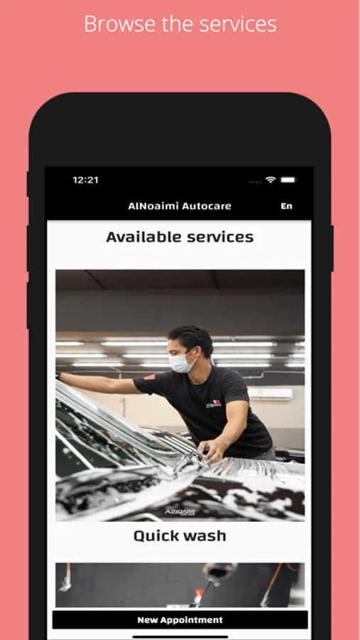 Alnoaimi Autocare, this app is used to browse available services and book an appointment in the workshop.