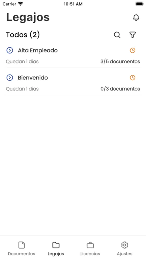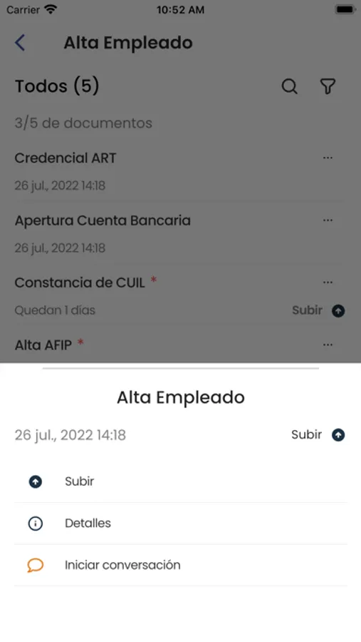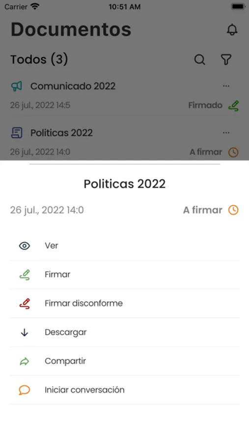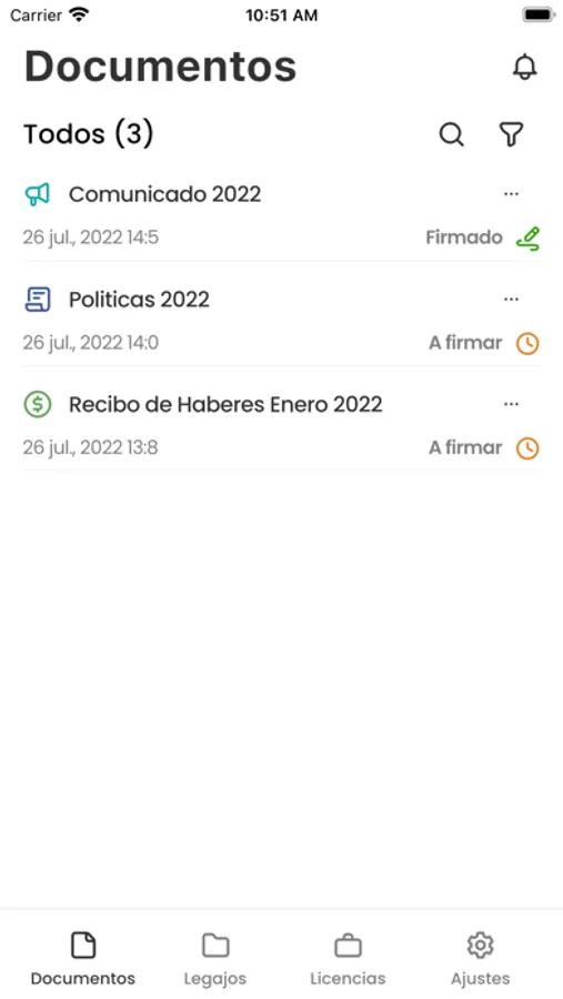 - De forma muy simple podrás visualizar los documentos que te enviaron, filtrarlos por tipo de documento, buscar un documento por nombre y descargarlos.