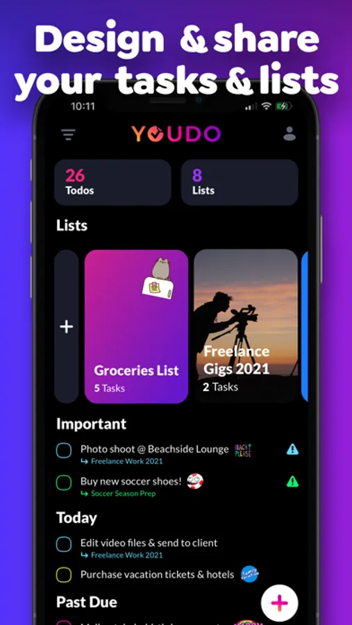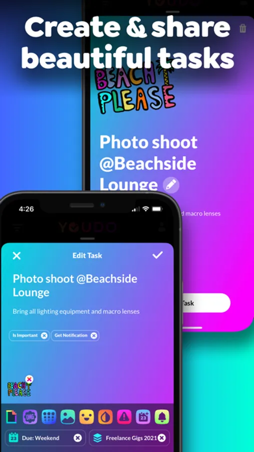 We believe in keeping Youdo as simple and beautiful as possible. we see other apps, cluttered with tons of features that confuse and ultimately don't add much value.