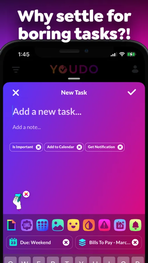 We've created the only task app that focuses on you having fun. giving you the tools to design awesome tasks and lists that best represent each and every task and list.