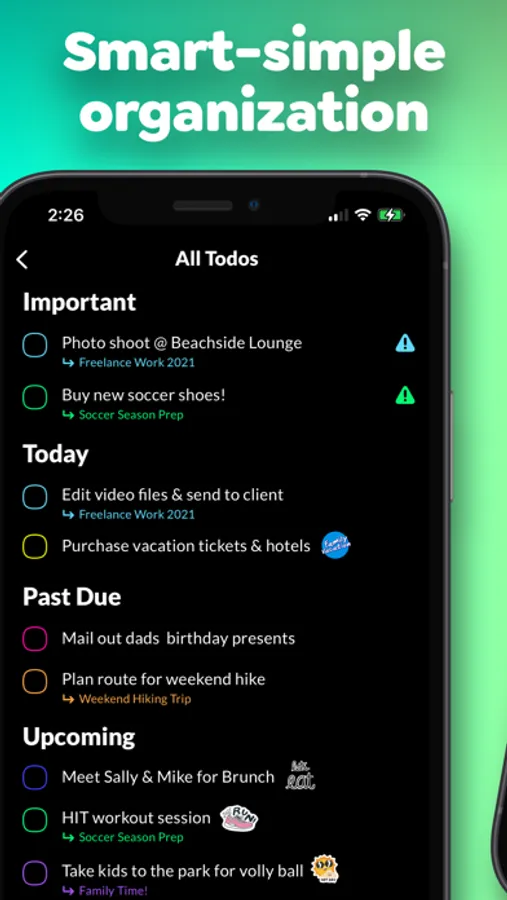 Smart auto-grouped tasks that keep you organized effortlessly. Simplified with a focus on making getting tasks done fun.