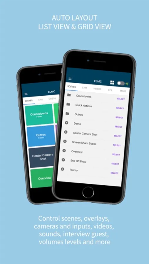 Control Ecamm Live using any iOS mobile device. With ELMC you will be able to control all aspects of Ecamm Live: Select between different scenes, trigger overlays by turning them on or off, select inputs (cameras, interview guest, NDI sources, etc), play and stop videos and sounds. You can control all volume levels independently. With this app you will be able to switch between different source modes such as camera mode, screen share mode, video mode, and blank source mode. The app gives your controls to toggle on or off the picture-in-picture feature. You can start or stop your recordings or live stream. ELMC provides over 29 actions to control Ecamm live. The ELMC app now supports two layout formats: Auto Layout & Custom Layouts Visit https://elmc.app/elmc-mobile-app for a complete list of actions.
