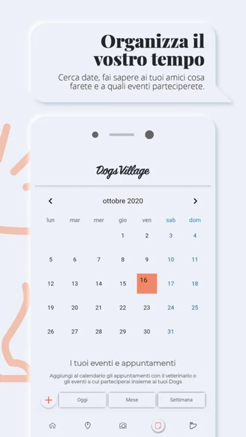 L'agenda permetterá di salvare promemoria ed eventi (visite veterinarie, compleanni, eventi)