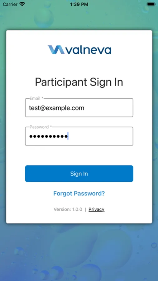 Clinical Trial Study App for the Valneva VLA1553-302 Vaccine study. This is a study to demonstrate lot-to-lot consistency of three lots of a live-attenuated Chikungunya virus. the app enables study participants to complete eDiary entries, view scheduled appointments, conduct video consultations, and access resources about the study.
