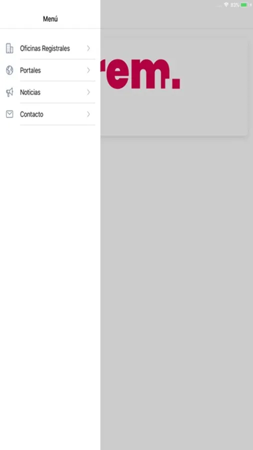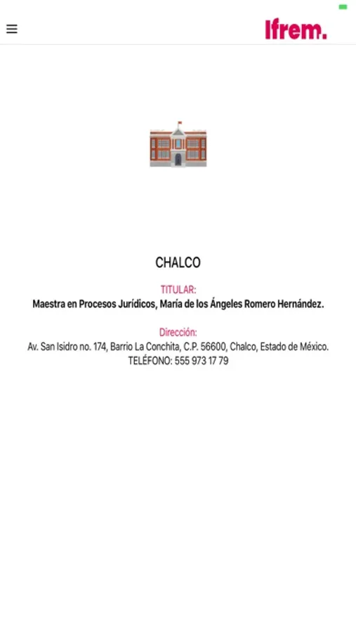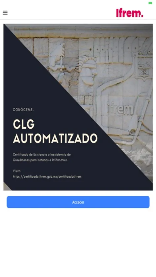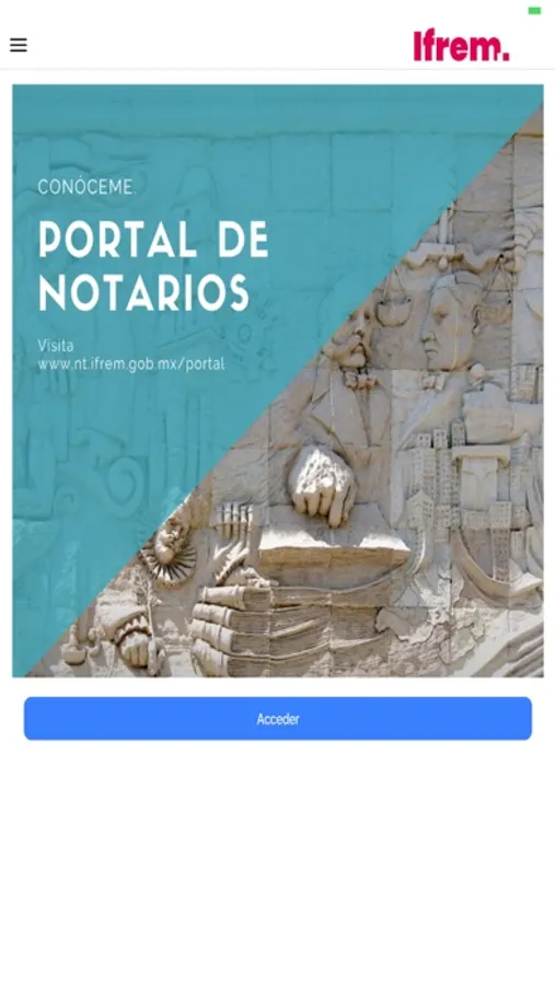 Aplicación promocional de los servicios del Ifrem, como Oficinas Registradles, Contactos Noticias, etc