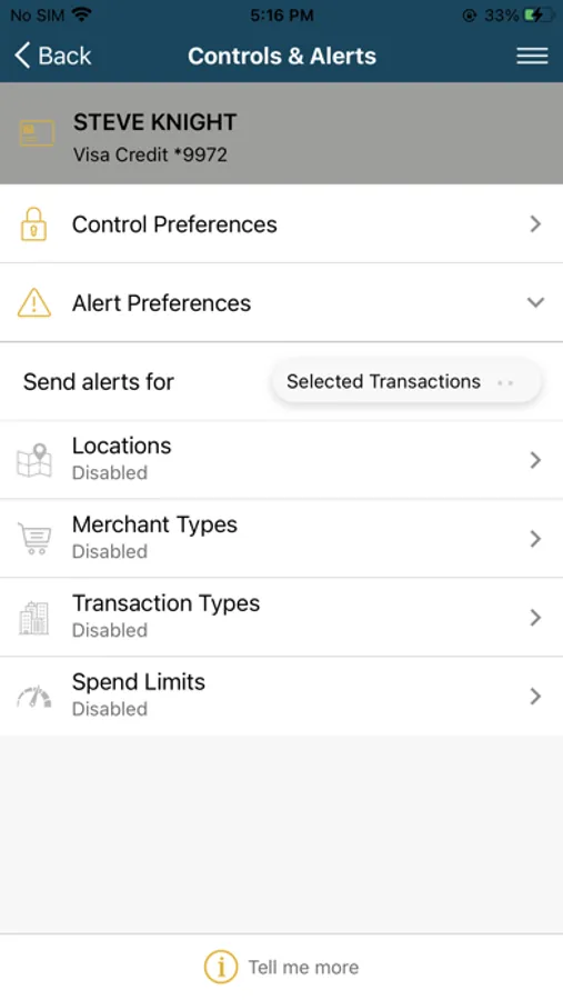 - Control transactions by location, choose merchants, and set purchase limits for yourself or your family members