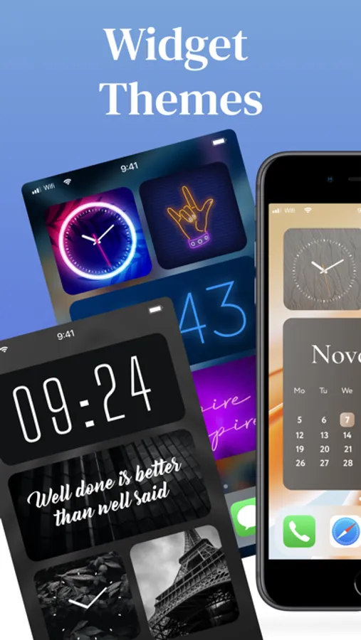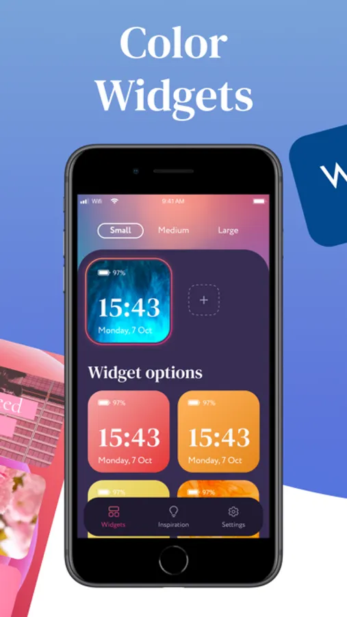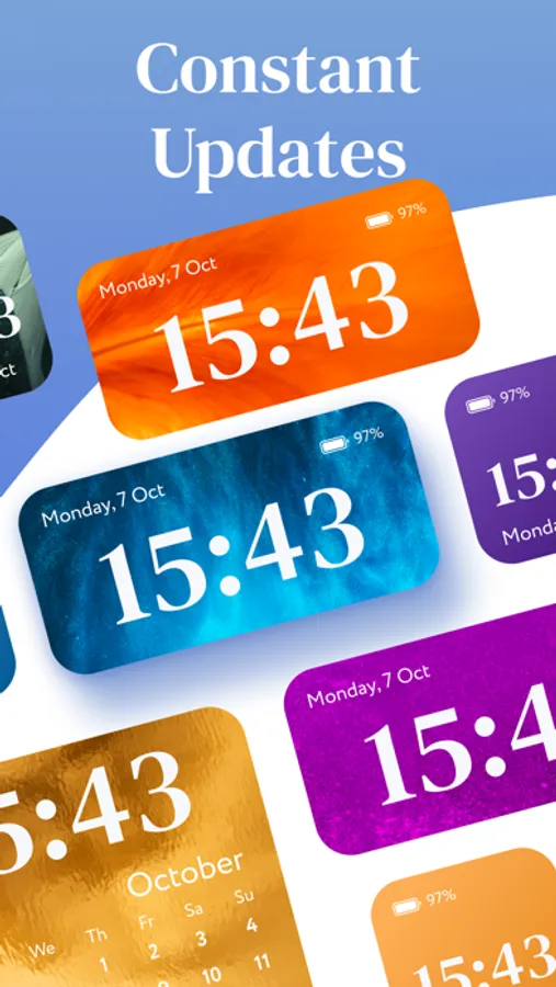 Add any date, time, calendar and battery percentage widgets with colorful and well-designed backgrounds.
