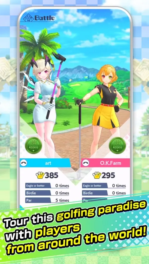 You can play against users from all over the world in a "Golf Tour", where you can stack up wins to elevate your rank!