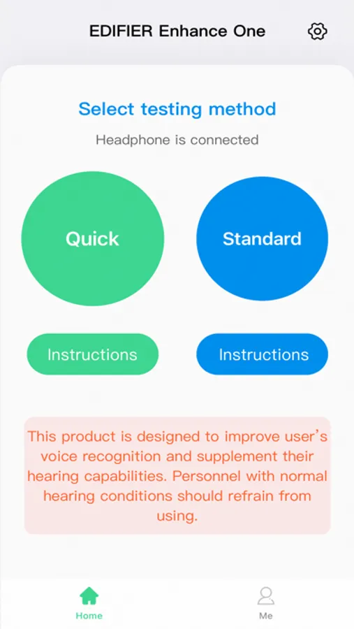 The Edifier Assist App provides hearing test services. An Edifier hearing supplement headphone is required. Connect the headphone and perform the hearing test in the APP; export the results to customize your headphones tailored to your needs.