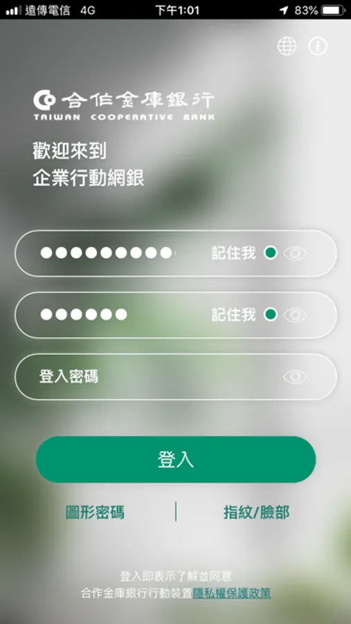 合庫企業銀行APP使用權限說明: