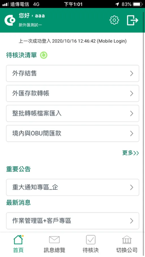 合庫企業銀行提供企業客戶綁定行動裝置辦理放行後核決作業,並搭配推播機制即時接收各項交易通知。