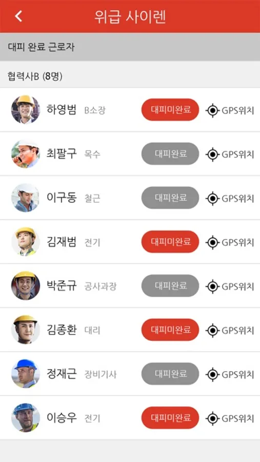 4. 모든 작업자가 핸드폰으로 화재 사이렌발동 및 대피확인 기능