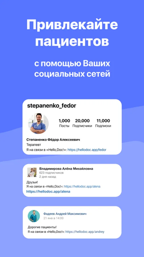 Привлекайте пациентов из социальных сетей, используя специальные функции приложения.