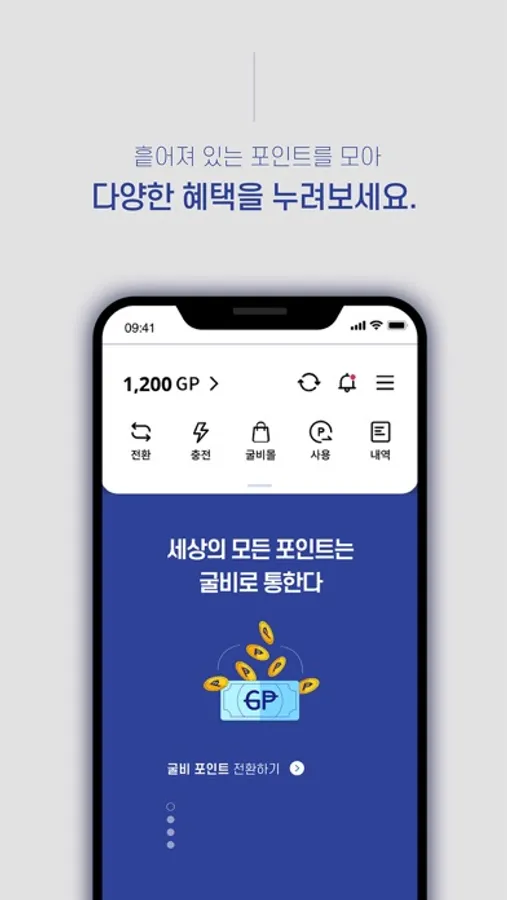 흩어져 있던 포인트를 모아 모아서, 한 번에 굴비포인트로 전환할 수 있어요