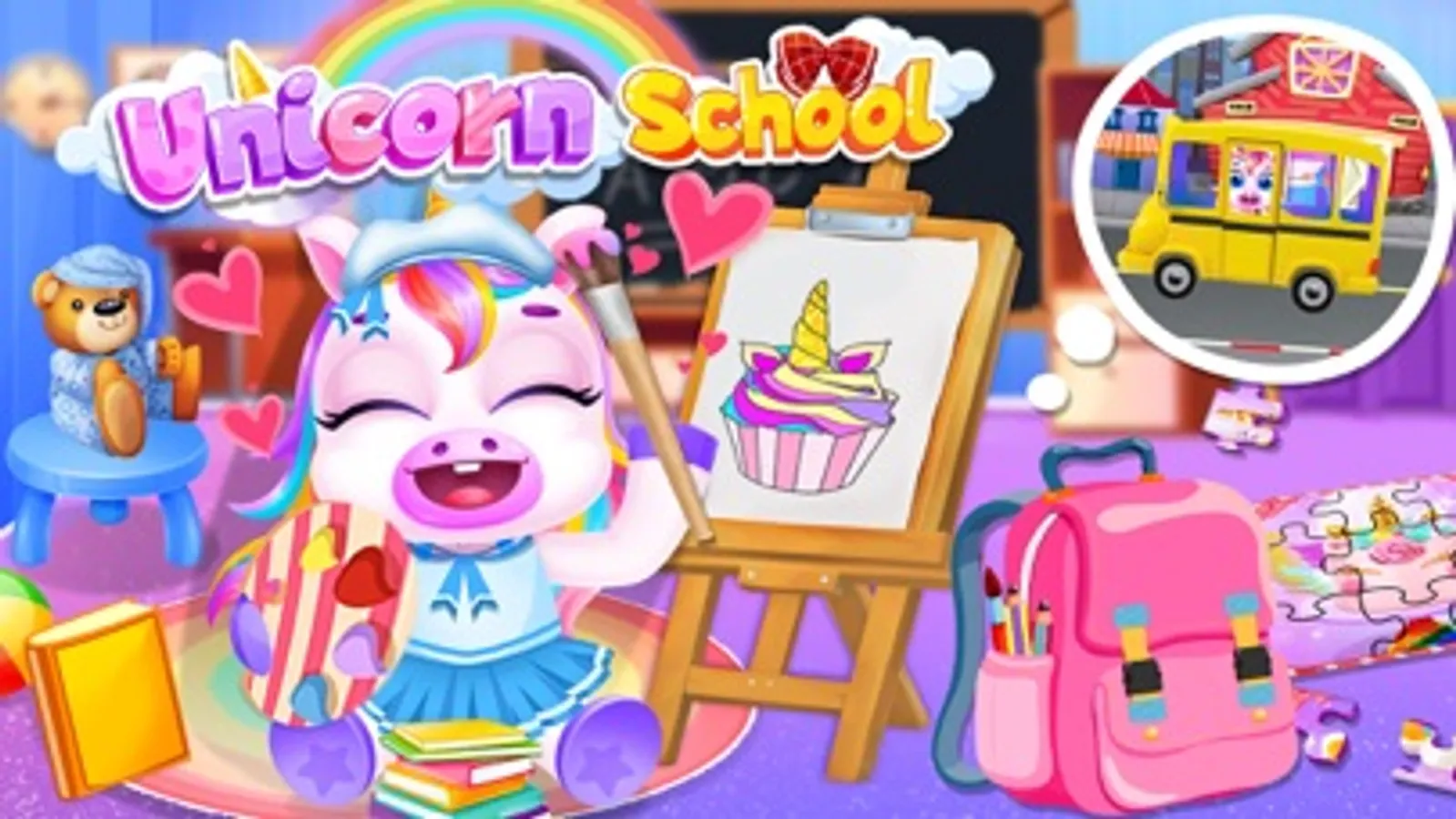 It’s very exciting that the unicorn is ready to go to school. She is in a hurry. Let’s help her. Get ready for unlimited fun in an amazing rainbow unicorn school. Prepare your bags, grab all your books,and press your uniform for the most interesting experience in a wonderful school.
