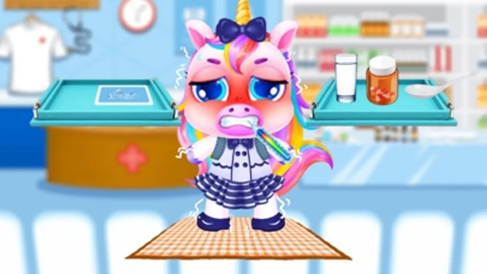 You can also pretend to be a doctor to care for the unicorn who has had a fever. Check out the temperature and do the curements as a real doctor.
