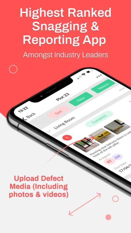 - Each snag can have multiple photos and videos as well as priority, build stage & due date.