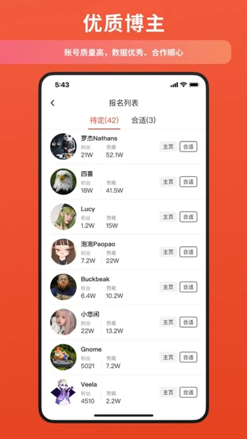 博主可在平台建立个人主页名片,名片数据自动更新,及时向合作商家展示的最新粉丝、互动数据。